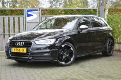 Audi A3 Sportback 1.4 TFSI CoD Ambition Pro Line S, voorzien van o.a.: 2x S-line, drive select, automatische airco, fullmap navigatiesysteem, boordcomputer, multifunctioneel lederen stuurwiel, sportstoelen leder/stof bekleding, elektrische ramen voor en achter, voorstoelen in hoogte verstelbaar, Bi-xenon koplampen, LED dagrijverlichting, centrale vergrendeling op afstand, cruise control, start/stop systeem, parkeersensoren achter, privacy glas, 18″lichtmetalen velgen, mistlampen voor, onderhoudsboekjes ingevuld aanwezig.