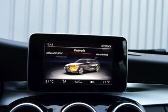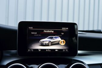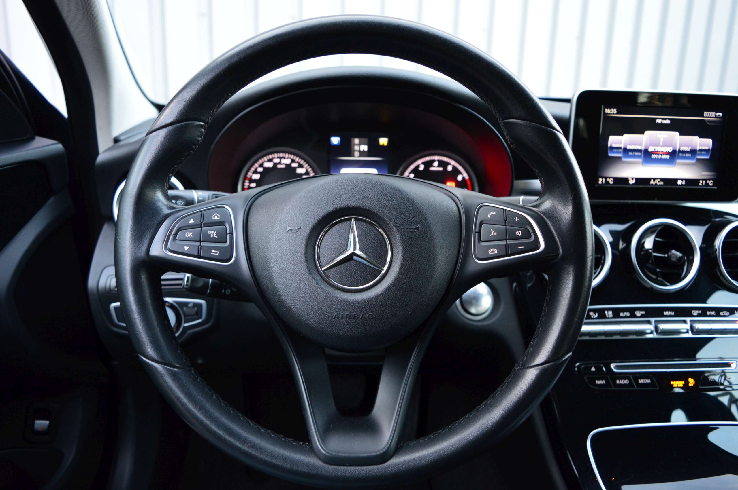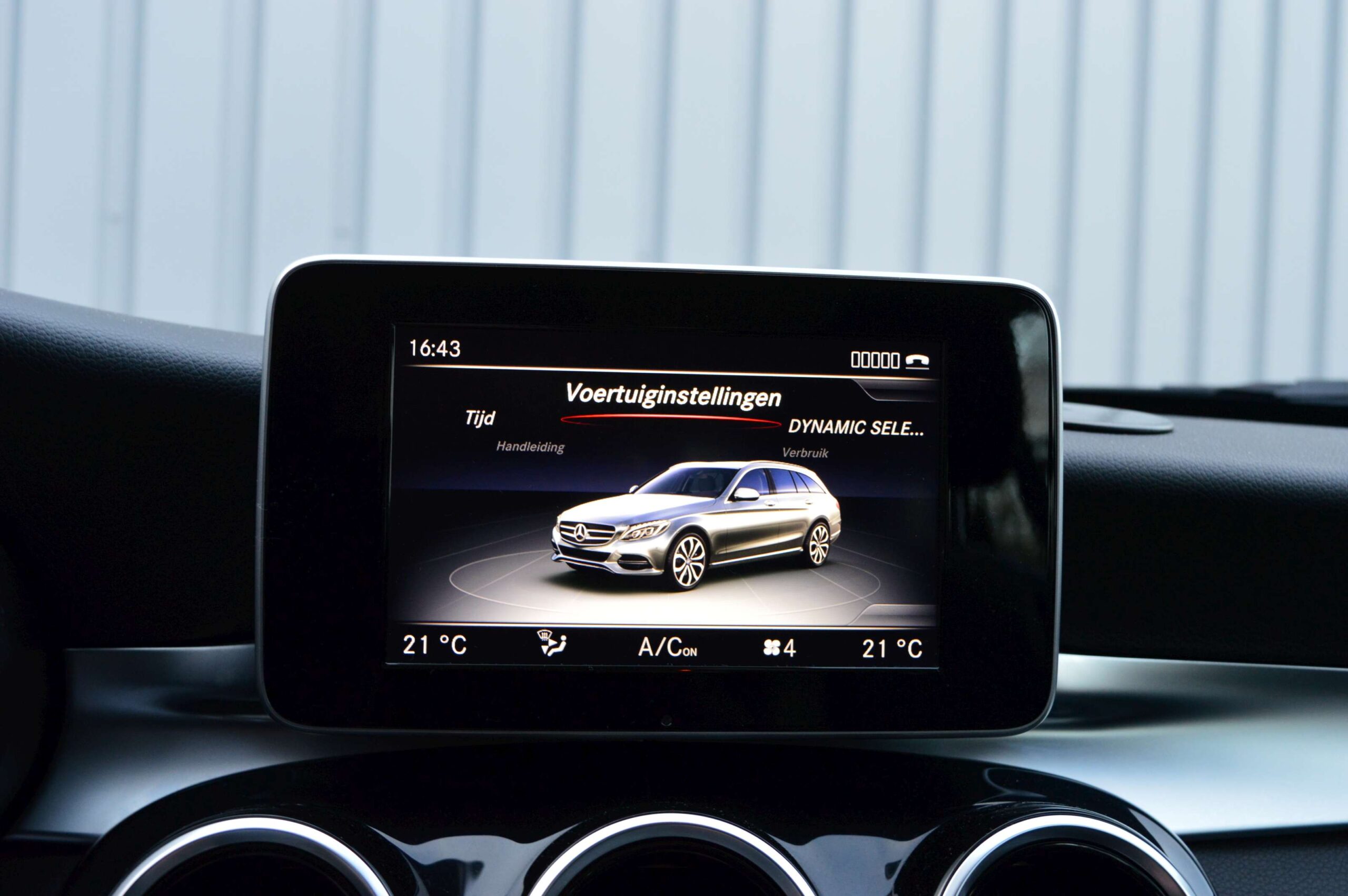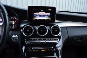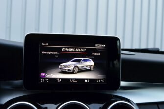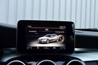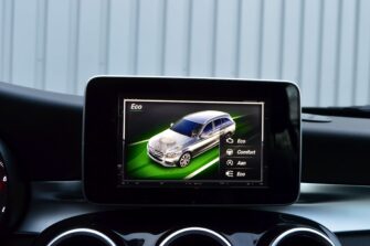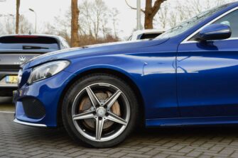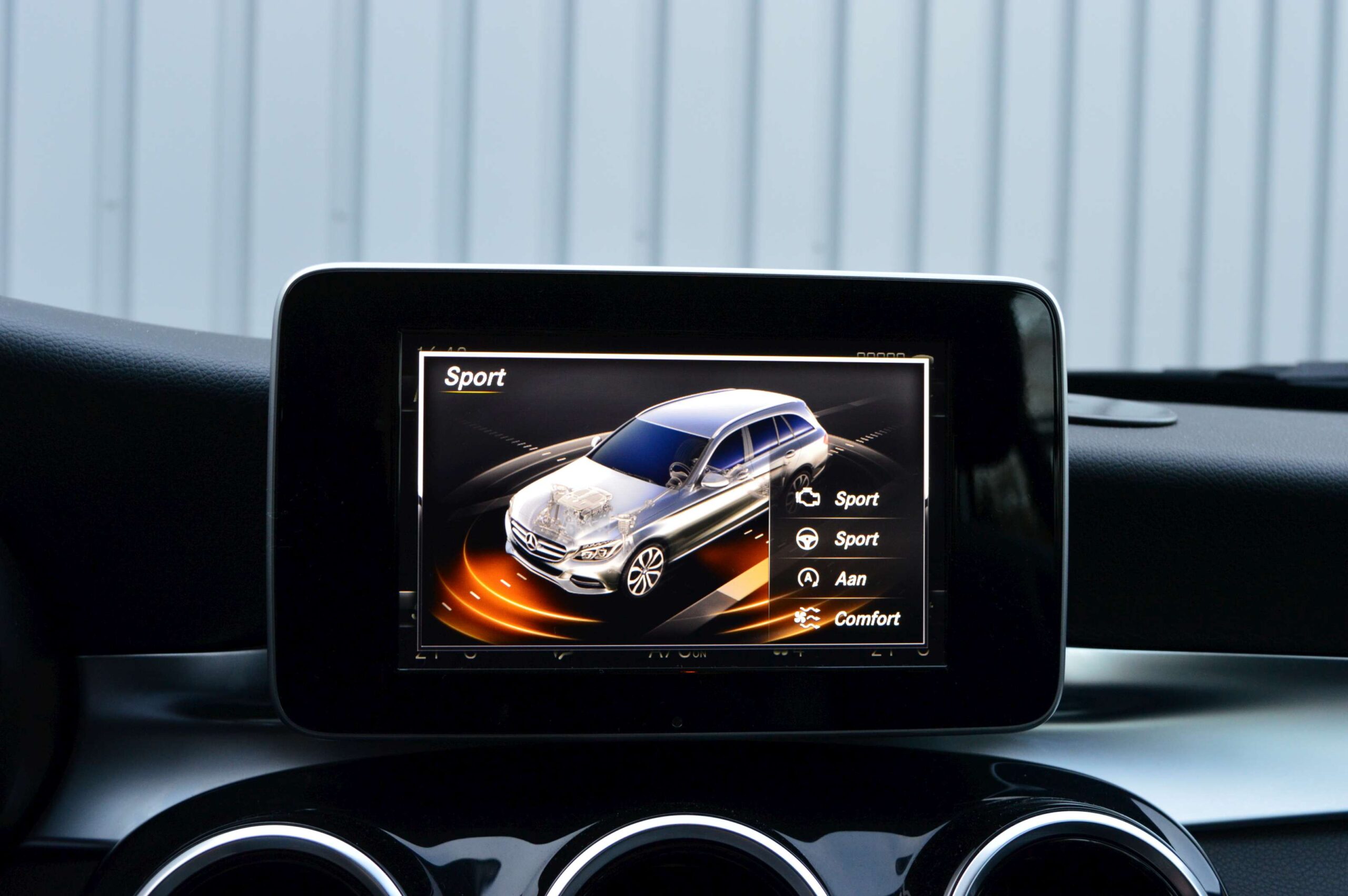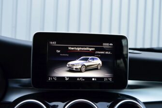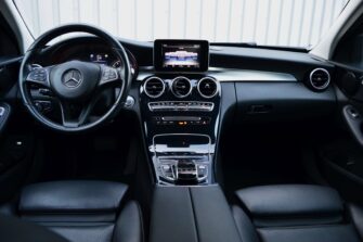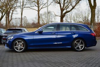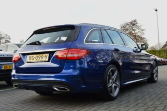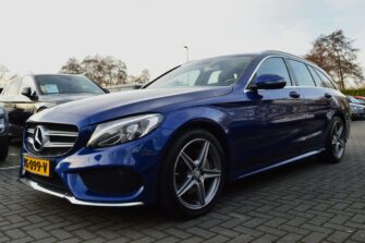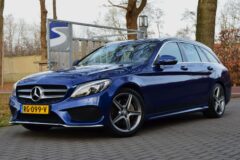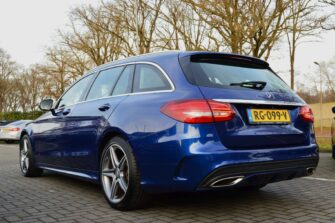 Mercedes-Benz C-klasse Estate 200 Ambition, voorzien van o.a.: automatische airco, full-map navigatiesysteem, lederen interieur, voorstoelen elektrisch verstelbaar met geheugen, stoelverwarming, multifunctioneel stuurwiel, 18″ AMG velgen, LED koplampen, elektrische achterklep, achteruitrijcamera, cruise control, afneembare trekhaak, onderhoudshistorie ingevuld aanwezig.