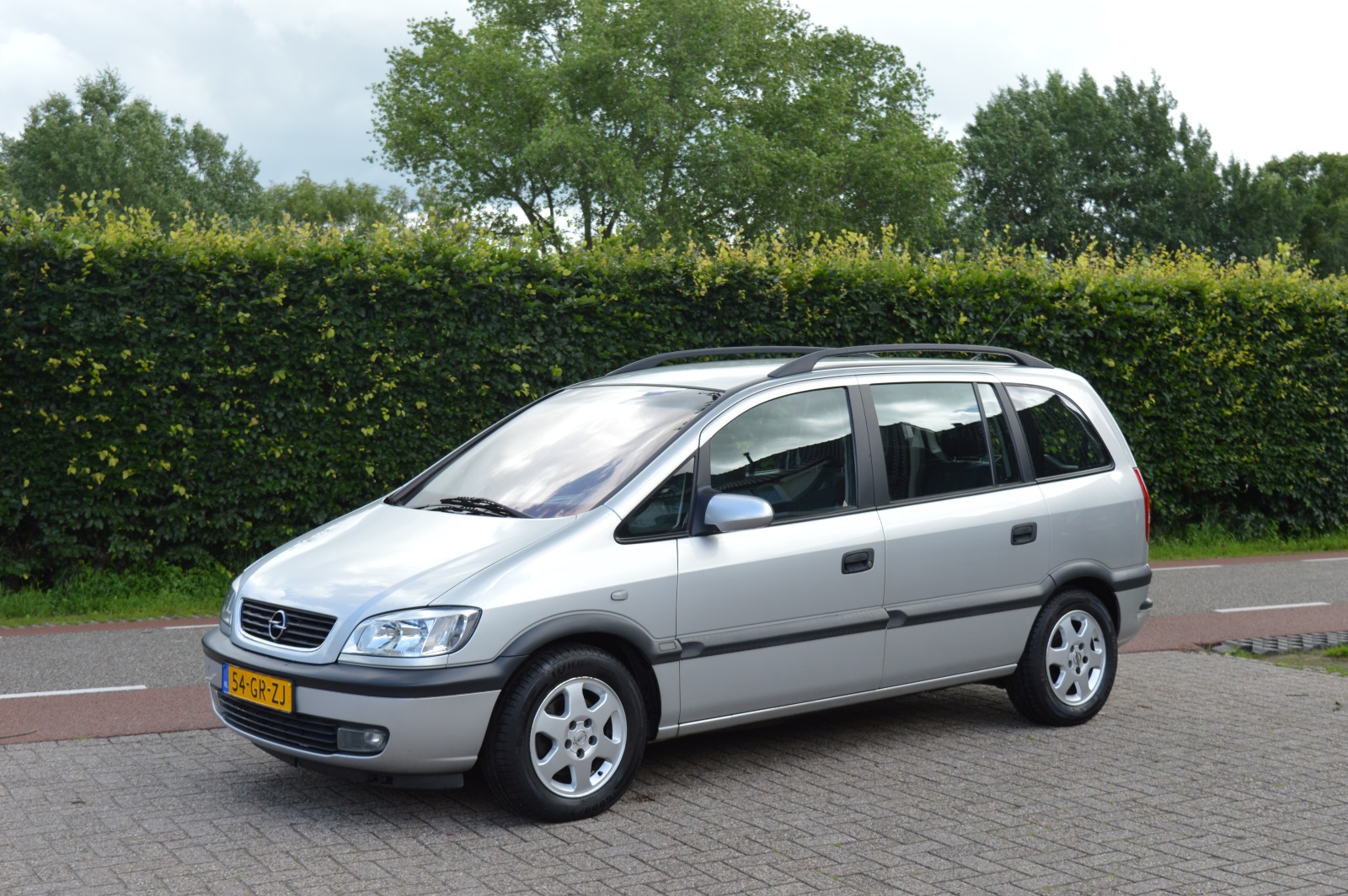 Opel Zafira 2.2-16V Elegance, voorzien van o.a.: airco, origineel audiosysteem met stuurbediening, lichtmetalen velgen, centrale vergrendeling op afstand, elektrische ramen voor en achter, in hoogte verstelbare voorstoelen, elektrisch verstelbare spiegels, trekhaak. Kleine barst in voorruit.