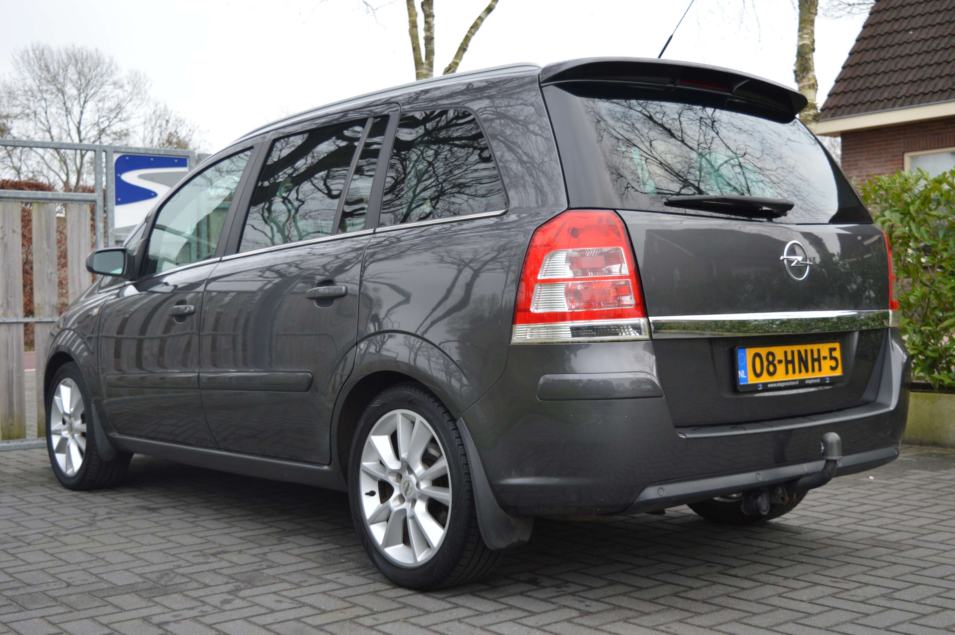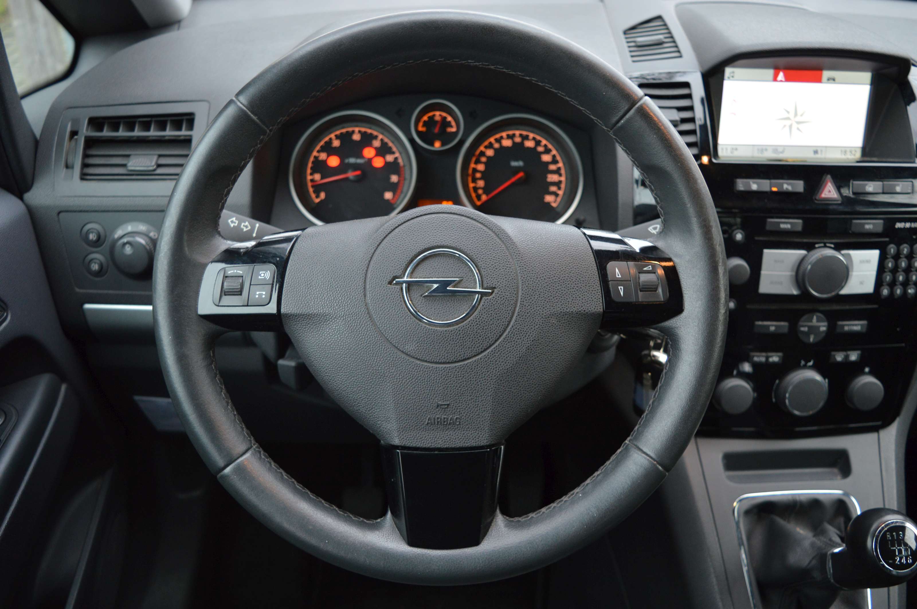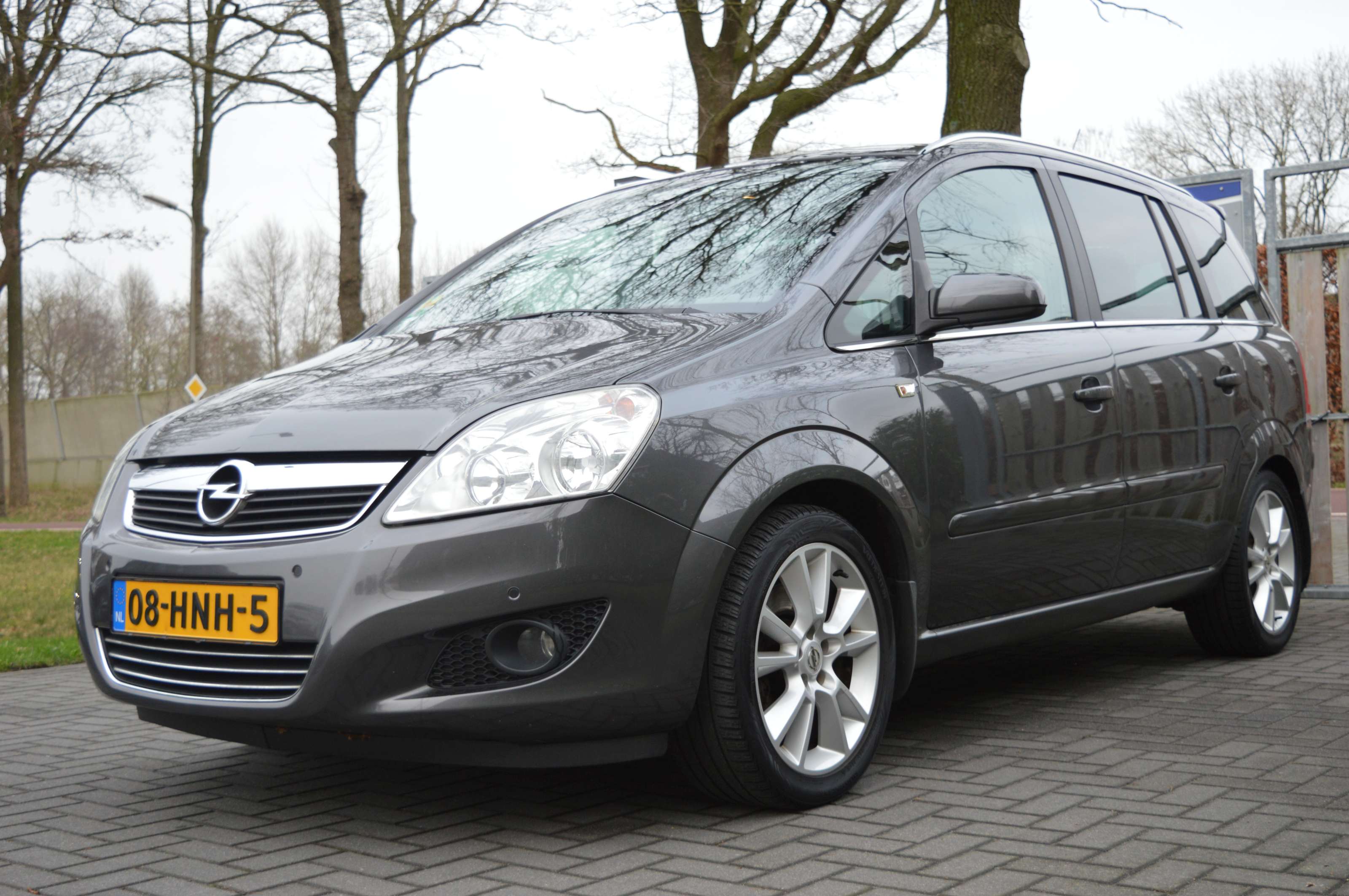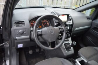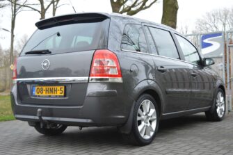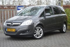 Opel Zafira 2.2 Cosmo, voorzien van o.a.: airco, centrale vergrendeling op afstand, 17″ lichtmetalen velgen, elektrische ramen voor en achter, half lederen interieur, full-map navigatiesysteem, multifunctioneel stuurwiel, cruise control, parkeersensoren voor en achter, privacy glas, voorstoelen in hoogte verstelbaar, dakrails, onderhoudsboekjes ingevuld aanwezig.