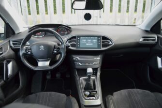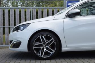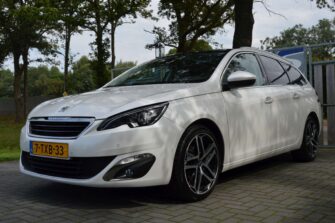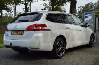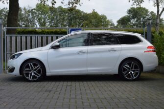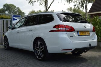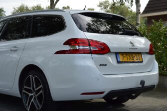 Peugeot 308 SW 1.2 e-THP Première, voorzien van o.a.: automatische airco, centrale vergrendeling op afstand, LED dagrijverlichting, LED-koplampen, 18″ lichtmetalen velgen, panoramadak, privacy glas achter, mistlampen voor, half-lederen interieur, parkeersensoren voor en achter, multifunctioneel lederen stuurwiel, cruise control, voorstoelen in hoogte verstelbaar, full-map navigatiesysteem, trekhaak, onderhoudsboekjes ingevuld aanwezig.