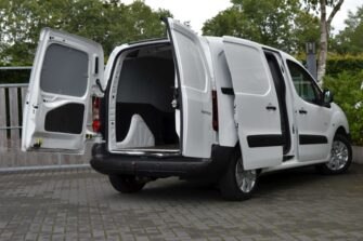 Peugeot Partner 1.6 BlueHDi 75 L1 XR, voorzien van o.a.: airco, centrale vergrendeling op afstand, elektrische ramen, zijschuifdeur rechts, volledig tussenschot, cruise control, origineel audiosysteem, parkeersensoren achter, ESP, betimmering laadruimte, trekhaak.