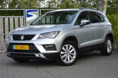 Seat Ateca 1.4 EcoTSI Style, voorzien van o.a.: fullmap navigatiesysteem, multifunctioneel lederen stuurwiel, carplay, parkeersensoren voor en achter, parkeer assistent, mistlampen voor, cruise control, achteruitrijcamera, elektrisch wegklapbare trekhaak, led koplampen, led achterlichten, lichtmetalen velgen, onderhoudsboekjes ingevuld aanwezig.