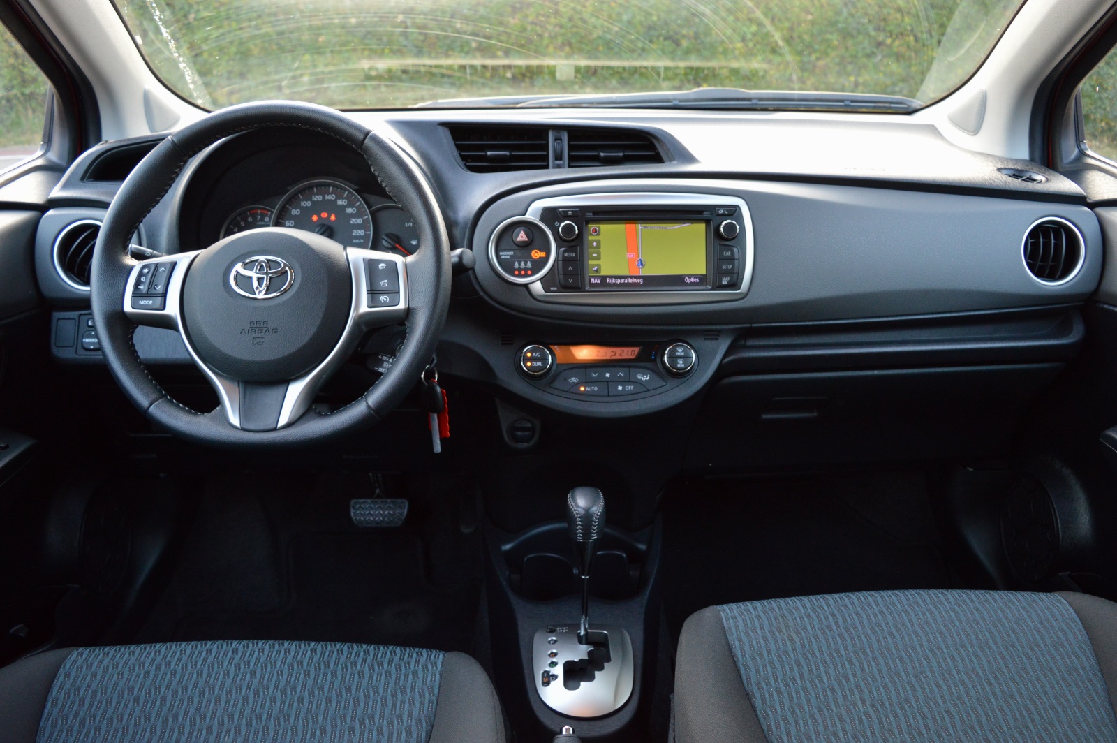 Toyota Yaris 1.3 VVT-i Aspiration, voorzien van o.a.: automatische airco, boordcomputer, fullmap navigatiesysteem, achteruitrijcamera, start/stop systeem, schakelmogelijkheid aan stuurwiel, multimediavoorbereiding, elektrische ramen voor, onderhoudsboekjes ingevuld aanwezig.